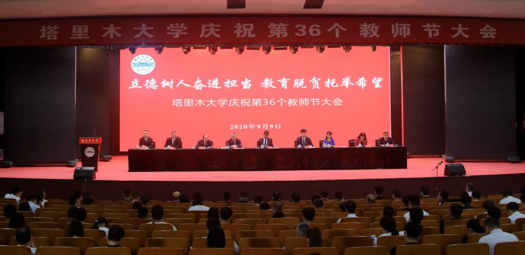 9月9日下午,伴随着庄严的奏唱国歌声,塔里木大学庆祝第36个教师节大会隆重举行。党委书记赵光辉出席并讲话。党委副书记、校长张传辉,党委副书记、纪委书记单洪山,党委副书记张爱萍,党委常委、副校长卢光志,副校长张利莉,党委常委、副校长于军、石长青,党委常委、组织部部长马智群出席。全体处级干部、教师代表、退休教师代表、学生代表参会。大会由张传辉主持,在行政楼B座报告厅举行。