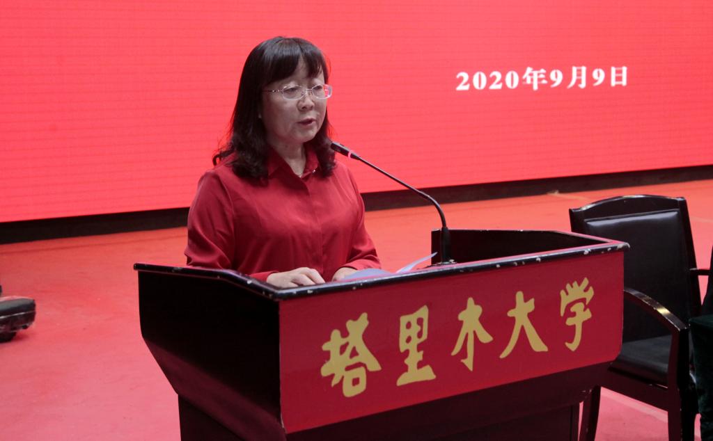 教师代表植科院吴翠云发言表示,将以从老一辈塔大教师身上学到的胡杨精神去影响和感染学生,将塔大的胡杨精神传承下去,坚决扛起为党育人、为国育才的历史责任,坚守三尺讲台辛勤耕耘,坚守南疆科技服务阵地,努力工作,真正成为“四有”好老师,继续为新疆高等教育事业、为服务兵团向南发展、为建设兵团特点、南疆特色的高水平大学不断贡献自己的力量。