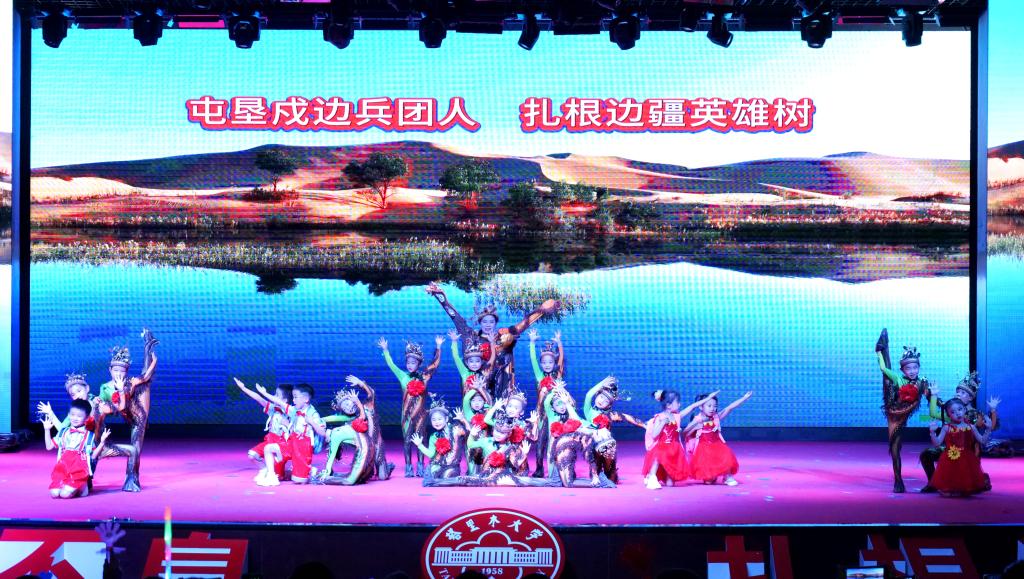 屯垦戍边兵团人,扎根边疆英雄树。生而一千年不死,死而一千年不倒,倒而一千年不朽。文艺汇演在原创舞蹈《我给胡杨戴红花》中拉开帷幕,灵动热情的小朋友们,把胡杨精神演绎的淋漓尽致,博得了全场热烈掌声。