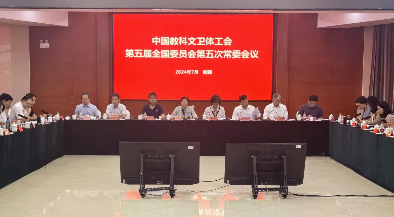 7月9日至10日,中国教科文卫体工会第五届全国委员会第五次常委会议在塔里木大学召开。中国教科文卫体工会主席、分党组书记高洁主持会议。中国教科文卫体工会五届常委会组成人员以及未担任五届常委的省级教科文卫体工会主要负责同志参加会议。