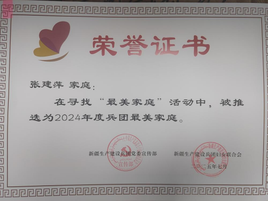 7月22日,兵团妇联揭晓50户2024年度兵团最美家庭,我校生命科学与技术学院张建萍、徐勇家庭,荣获2024年度兵团最美家庭。