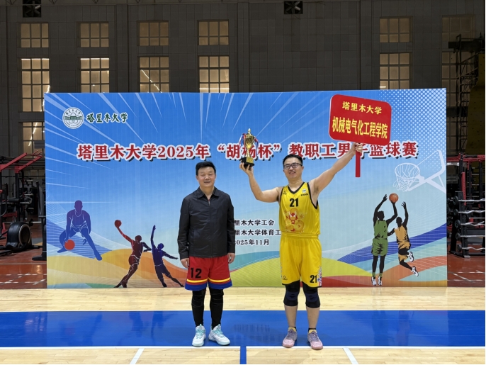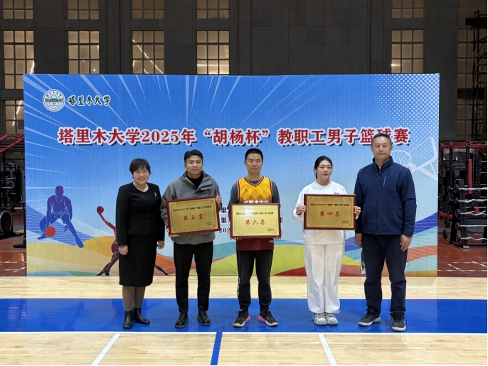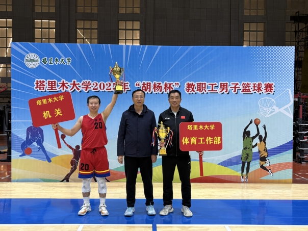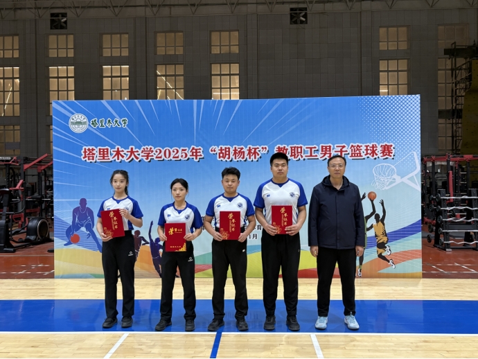 10月29日至11月19日,塔里木大学2025年“胡杨杯”教职工男子篮球赛在风雨操场成功举办。本次比赛由校工会主办,体育工作部承办,吸引了全校基层工会组建的15支代表队、近200名教职工积极参与。学校党委常委、副校长、宣传部部长王成涛,党委常委、纪委书记郑麟,党委常委、组织部部长张伟信出席颁奖典礼并为获奖代表队颁奖。颁奖典礼由学校工会主席张燕飞主持。
