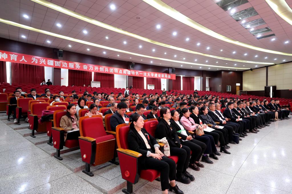 张爱萍讲话,代表学校党委感谢各位代表的辛勤付出和坦诚建言,就落实好此次大会精神,扎实做好今年学校各项工作,提出三点意见:一是要把握教育的政治属性,提高政治站位,扎根南疆大地办一流大学;二是要牢牢把握教育的战略属性,把握发展大势,推进一流大学建设;三是要牢牢把握教育的人民属性,锚定一流目标狠抓落实。