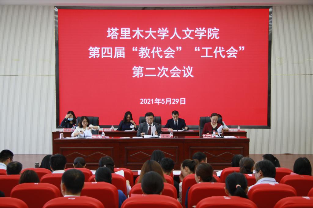 5月29日,人文学院第四届“教代会”“工代会”第二次会议在新文科楼504会议室胜利召开,学院党委书记张理、院长肖涛、副院长秀梅出席了会议,全体正式代表、列席代表参加大会。会议由秀梅主持。