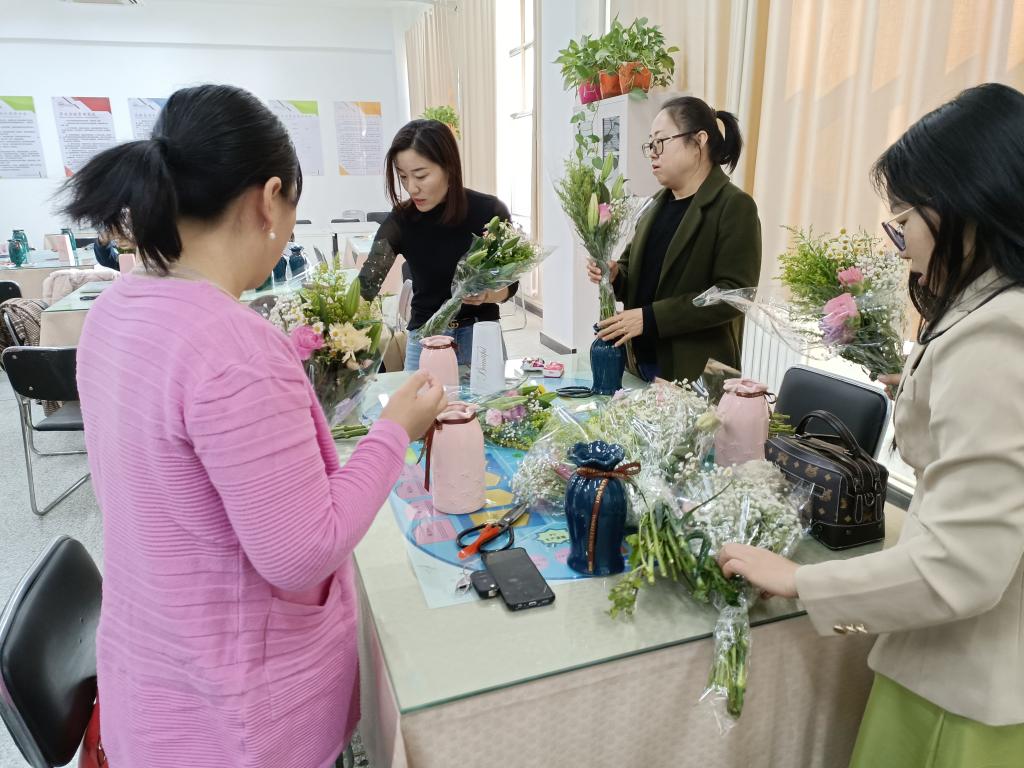 3月6日,为庆祝“三八”妇女节,经管院工会在文科实验楼201室组织开展了教职工插花活动。