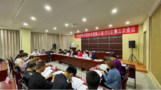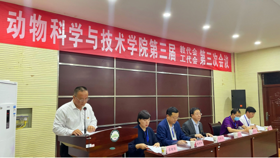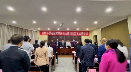 4月27日下午,在雄壮的奏唱国歌声中,动物科学与技术学院第三届教代会、工代会第三次会议在动科院218会议室召开。学校党委常委、副校长赵峰华出席会议,会议由学院党委副书记魏晓柳主持,全体代表共43人参加大会。