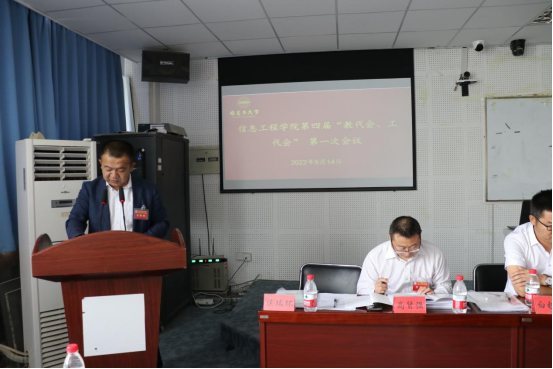 5月14日上午,信息工程学院第四届“教代会”暨“工代会”第一次会议圆满召开,学院党委书记周保平,院长张学东,副院长白铁成,教职工代表40余人参加了会议。会议由白铁成主持,在逸夫教学楼203会议室举行。