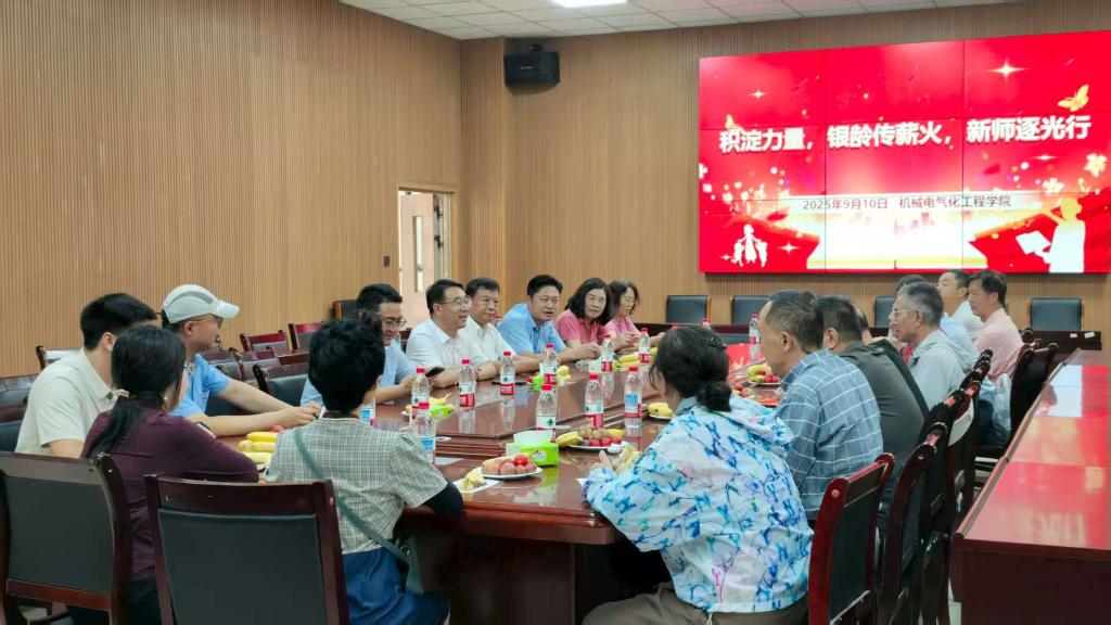 9月10日,机械电气化工程学院党委、工会在东扩区机电楼D108室举办“积淀力量,银龄传薪火,新师逐光行”教师节交流活动,致敬银龄教师,助力新教师成长。