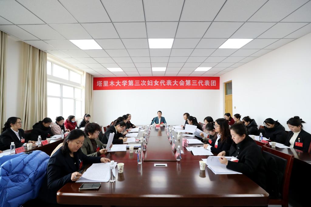 12月14日,塔里木大学第三次妇女代表大会第一次全体会议的全体代表、列席人员分为四个代表团,围绕《学校第二届妇女委员会工作报告》(审议稿),大会选举办法(草案),第三届妇女委员会委员候选人建议名单,大会总监票人、监票人建议名单(草案)展开了深入讨论。