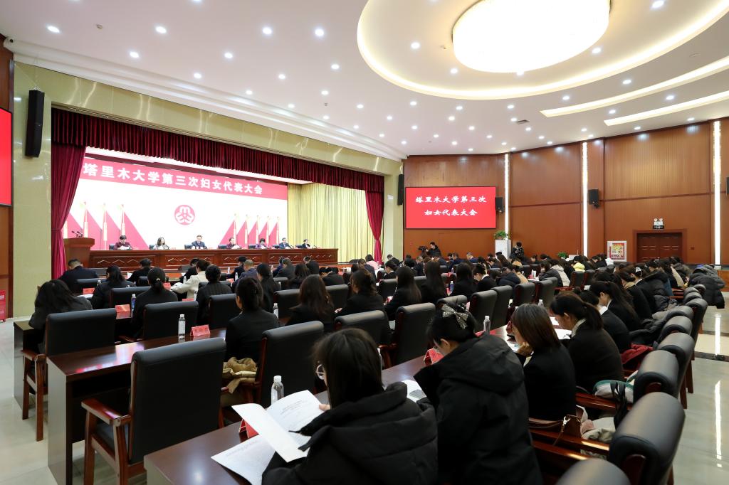 12月14日上午,塔里木大学举行第三次妇女代表大会开幕式。兵团妇联党组书记、主席姜淑霞,塔里木大学党委书记张爱萍,党委副书记、校长闫祥林,党委副书记、副校长林松涛,党委常委、纪委书记郑麟出席。特邀嘉宾、全体代表、列席人员参加。