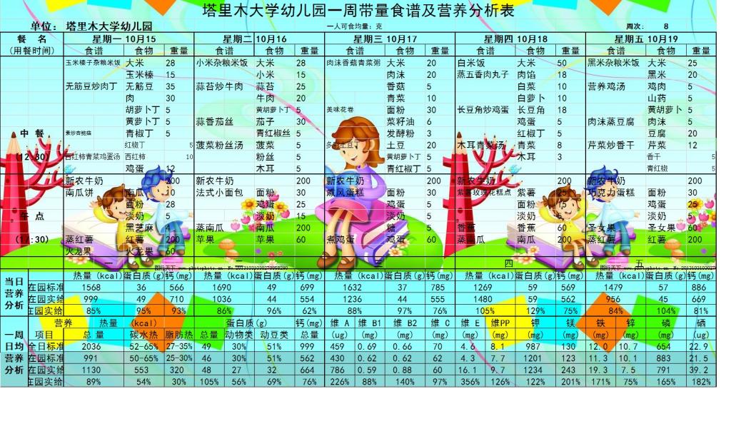 塔里木大学幼儿园一周带量食谱